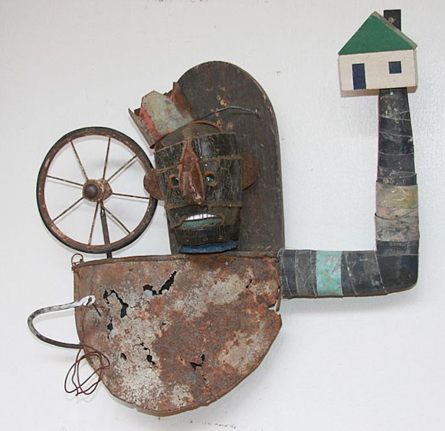 creates folk art sculpture from assimilated found objects, creating his own mythology.